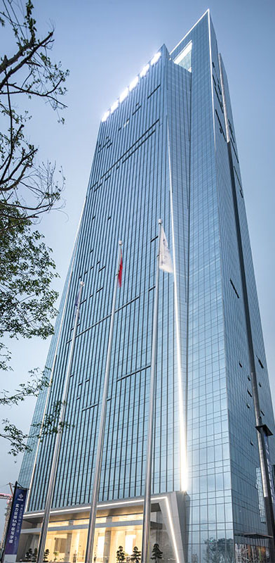 項(xiàng)目位于成都高新南區(qū),美麗的錦江河畔,兩棟塔樓分別作為新華文軒和新華發(fā)行集團(tuán)的總部辦公樓。塔樓體量巨大,建筑高度42層達(dá)